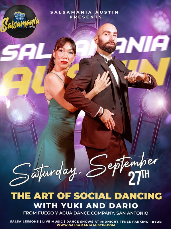 🔥 9:00 PM – The Art of Social Dancing with Dario & Yuki (Fuego y Agua, San Antonio)